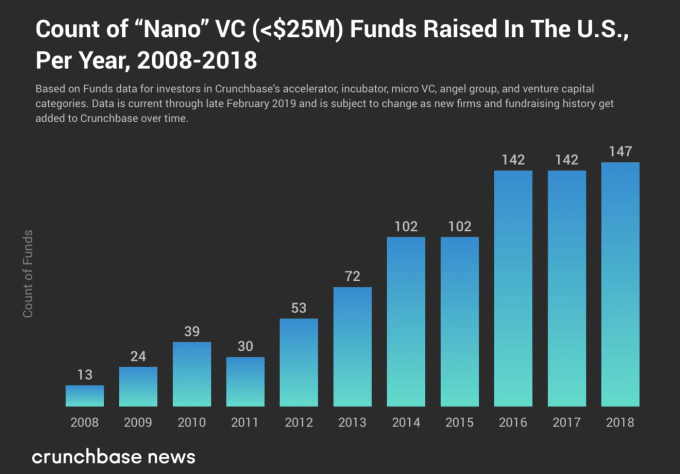Le parallèle saute aux yeux : en 2018, Nano et Micro VC ont été créés en nombre similaire. Mais attention, les montants qu’ils managent diffèrent radicalement. Nano et Micro VC représentaient respectivement 24 % et 25 % des nouvelles entités de capital-risque annoncées ou révélées par la SEC cette année-là. Pourtant, les Micro (25 à 100 millions) ont collecté 6 % du volume total levé, contre 1 % pour les Nano (< 25 millions).